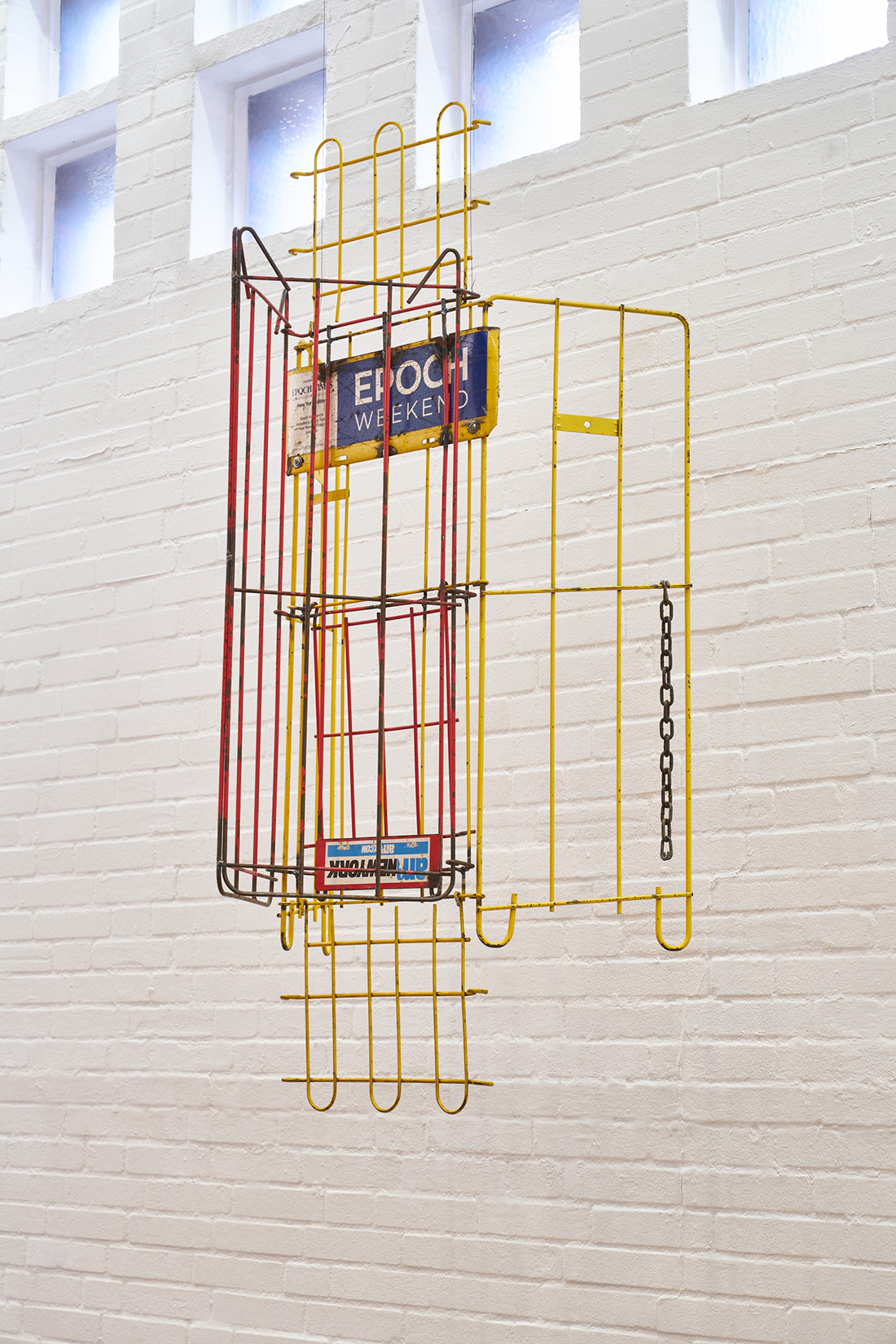 Newspeak no.5, 2017. Newspaper racks. 63 x 40 x 4 in