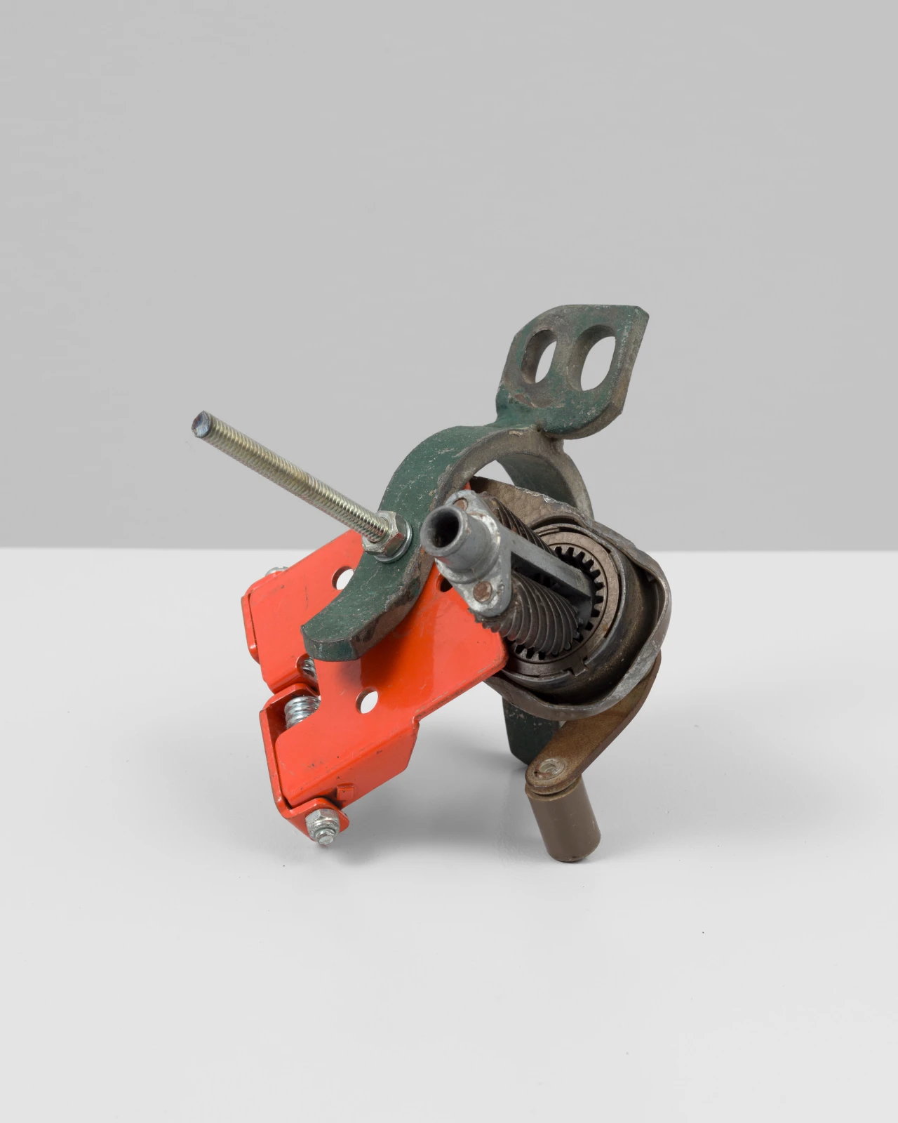Untitled (knob), 2025. doorknob, threaded pin, lock, hand truck attachment and steel hardware. 4 ⅝ x 8 ½ x 7 ¼ in