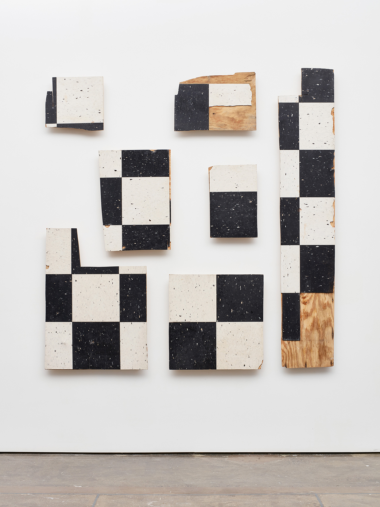 Untitled (Mop Painting). 2020. Plaster, vinyl tile on wood panel. 60 x 48 x 2 IN
