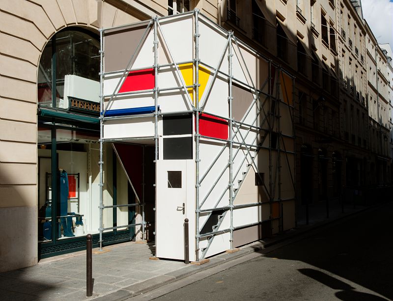 Scaffold Painting no.5. 2015. Scaffolding, paint on wall. 206” x 254” x 62”